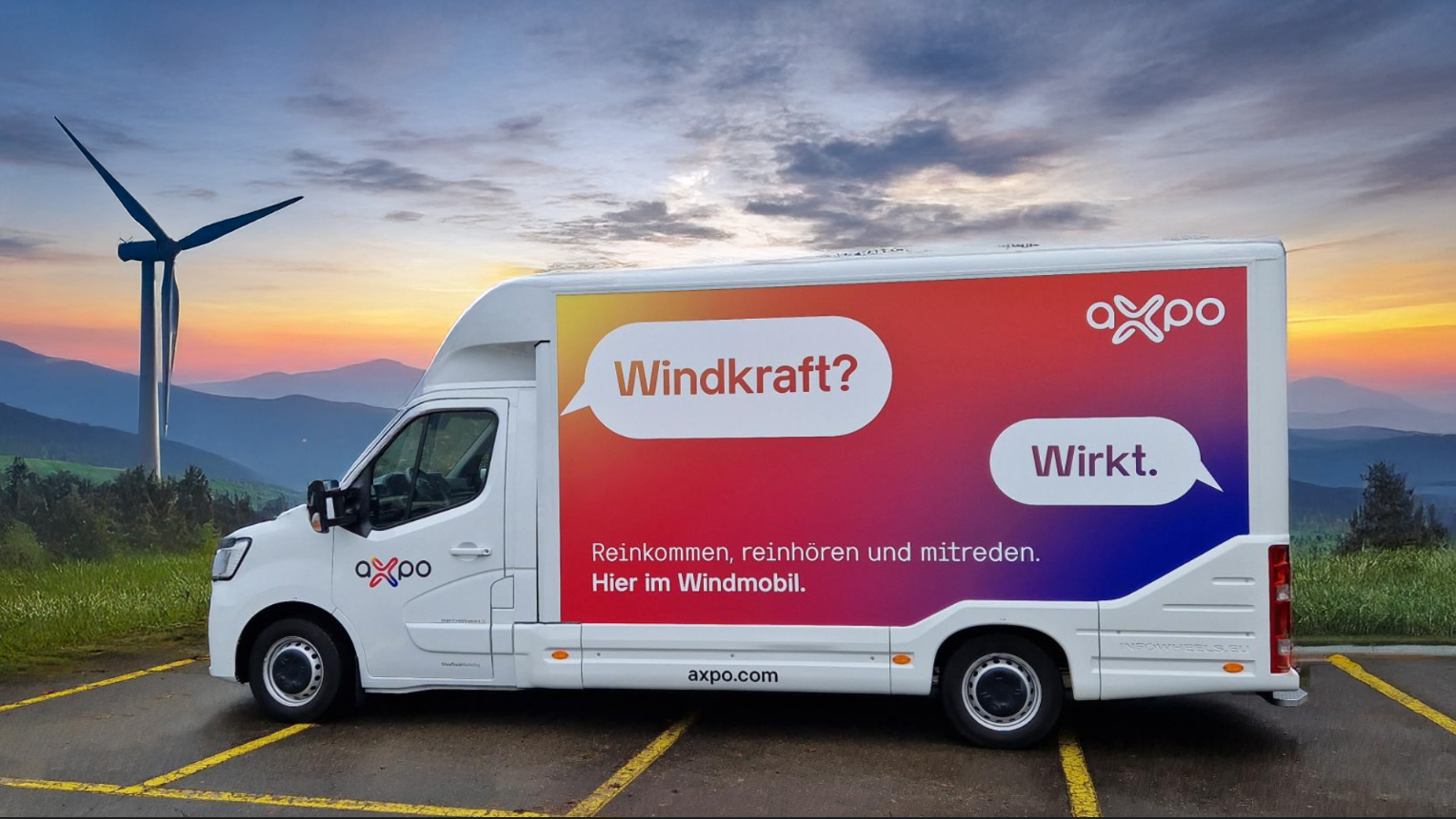 Ergänzt um das «Windmobil» der axpo und die zugehörige Forschung zu gesellschaftlicher Akzeptanz von Windenergie durch Martina Rothenberger, HSG, haben die Anwesenden die Möglichkeit erhalten und auch wahrgenommen, vor Publikum und am anschliessenden Apéro Fragen zu stellen und in einen regen Austausch zu treten.