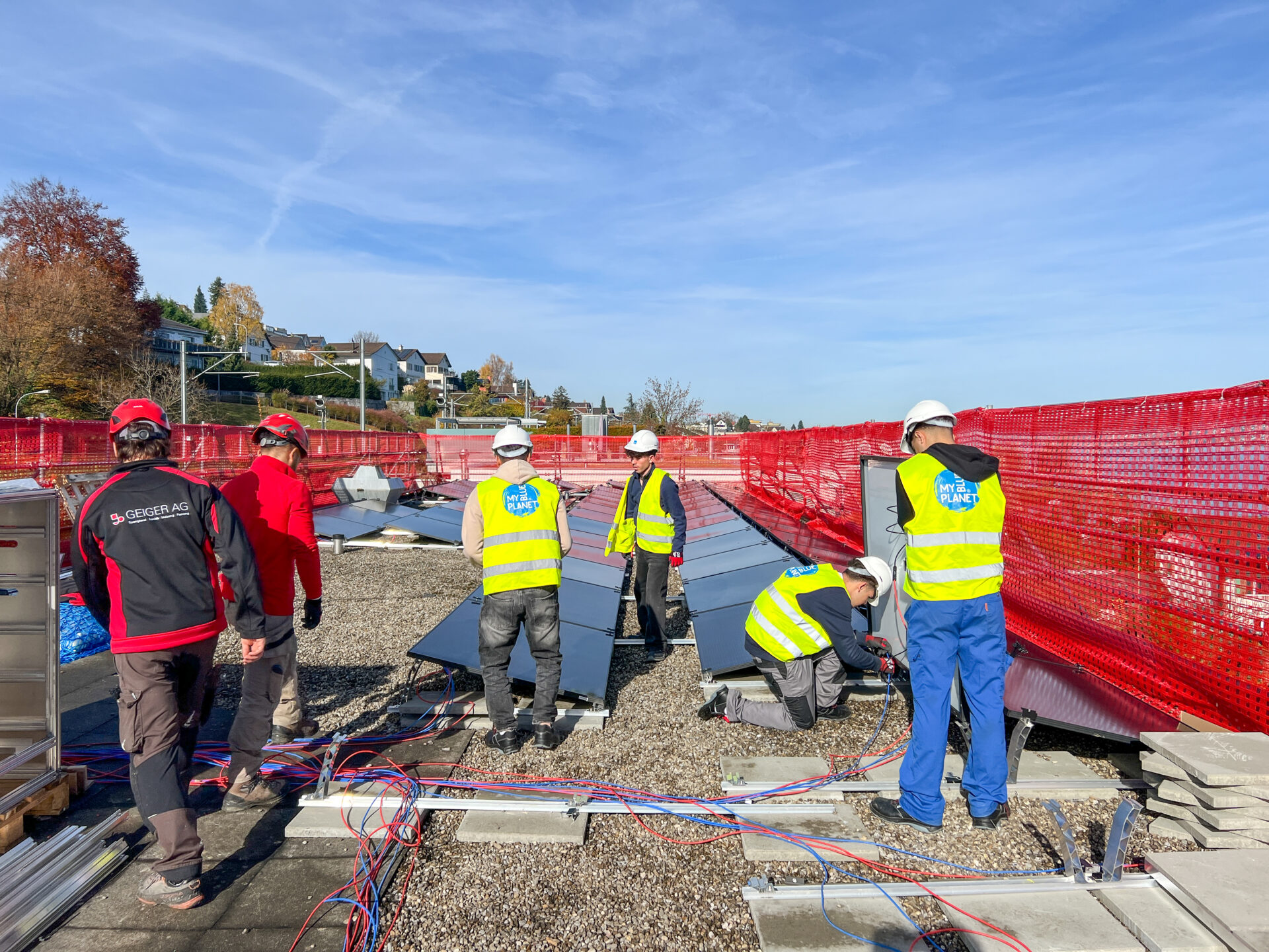 «Zollikon: Schülerinnen und Schüler unterstützen die Montage von Solarpanels auf «ihrem» Schulhaus»