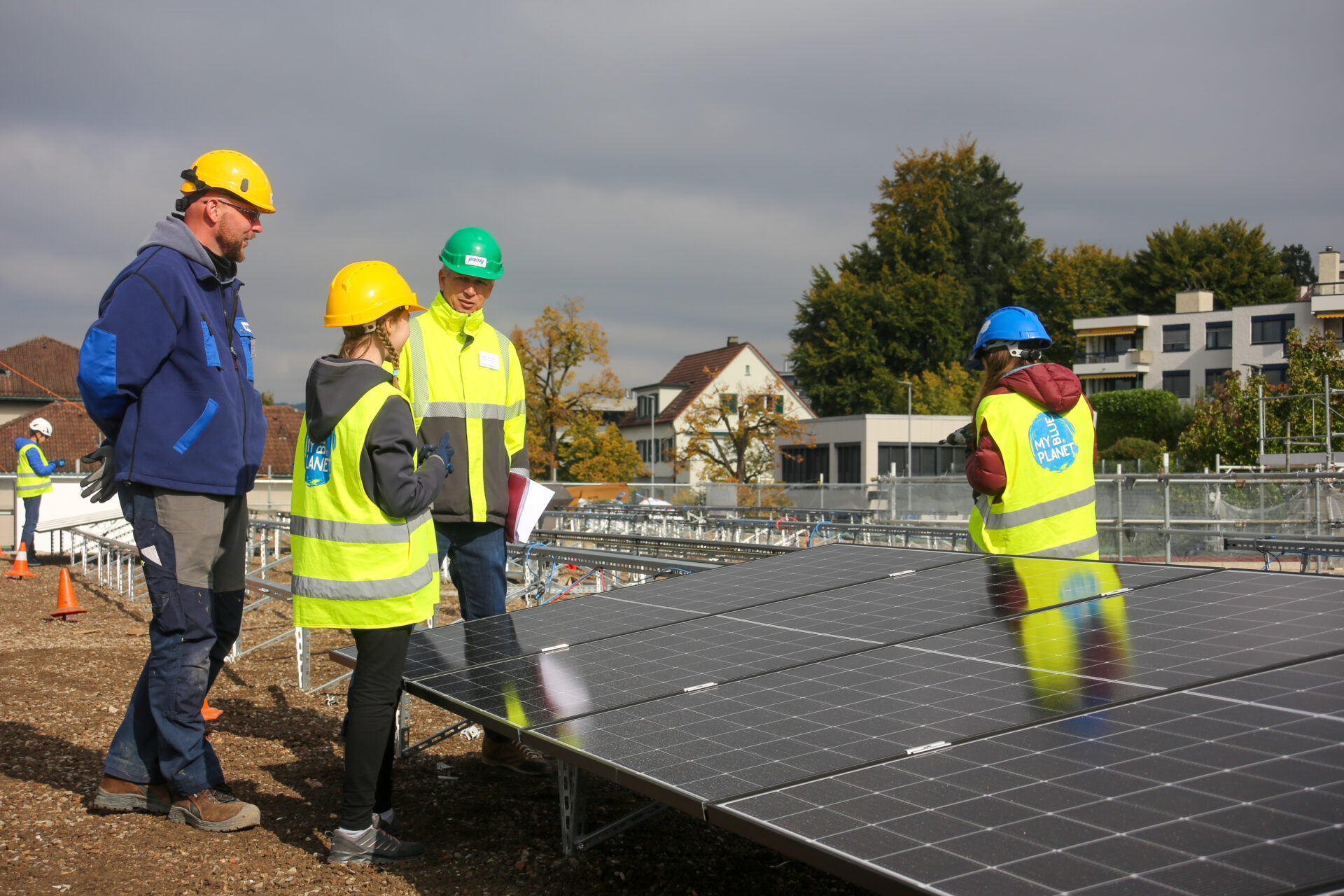 Donnerstagmorgen an der Primarschule Oescher in Zollikon: Während das Team von MyBluePlanet gemeinsam mit den involvierten Lehrpersonen die letzten Vorbereitungen traf, füllte sich der Pausenplatz bereits mit neugierigen Kindern. «Was macht ihr da?», fragten einige von ihnen. Die Antwort folgte kurz darauf bei der gemeinsamen Ansprache der Schulleitung und der Projektleiterin: Der Impact Day Solar für die Mittelstufe stand an.
