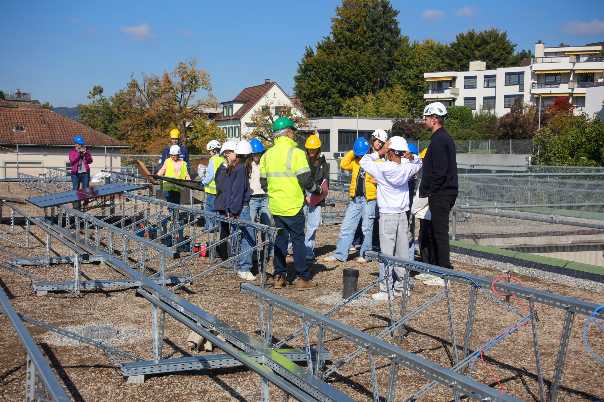 Auch durften einige 5. und 6. Klässler:innen die Solarmonteur:innen bei der Arbeit unterstützen – eine Aufgabe, auf die sich viele schon lange gefreut hatten. «Ich war ein bisschen nervös, aber auch aufgeregt. Ich war noch nie auf einem Dach, und ich wollte schon seit der ersten Klasse mal da rauf», erzählte eine Schülerin begeistert.